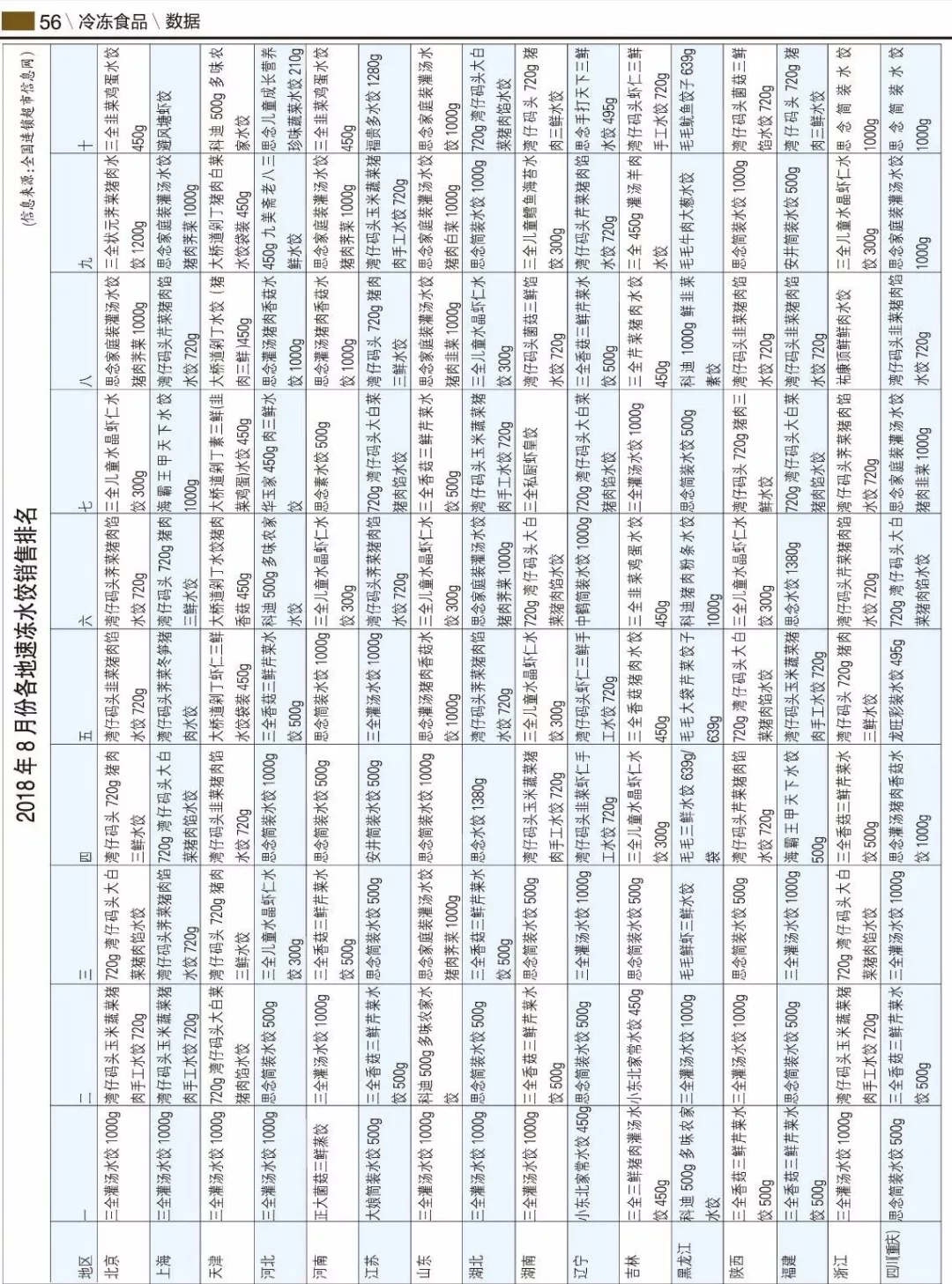 來源: 冷凍食品網 發(fā)布者:編輯▼2018年8月份各地速凍水餃銷售排名